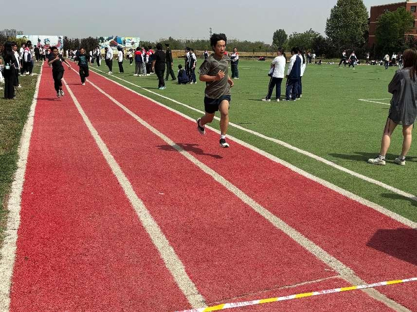 本次運(yùn)動會分別設(shè)置了100米、200米、400米、800米、4×400米接力賽、60米障礙往返跑、跳遠(yuǎn)等比賽項目。隨著發(fā)令槍響,運(yùn)動會各項比賽也緊鑼密鼓地開始了,寧靜的校園頓時沸騰起來。田徑賽場上,運(yùn)動員們?nèi)_刺,100米短跑的最好成績達(dá)到12秒58;跳遠(yuǎn)賽場上,最好成績達(dá)到 2.83米。啦啦隊加油助威,志愿者貼心服務(wù),廣播站傳遞精彩瞬間,整個校園沉浸在熱烈的氛圍中。